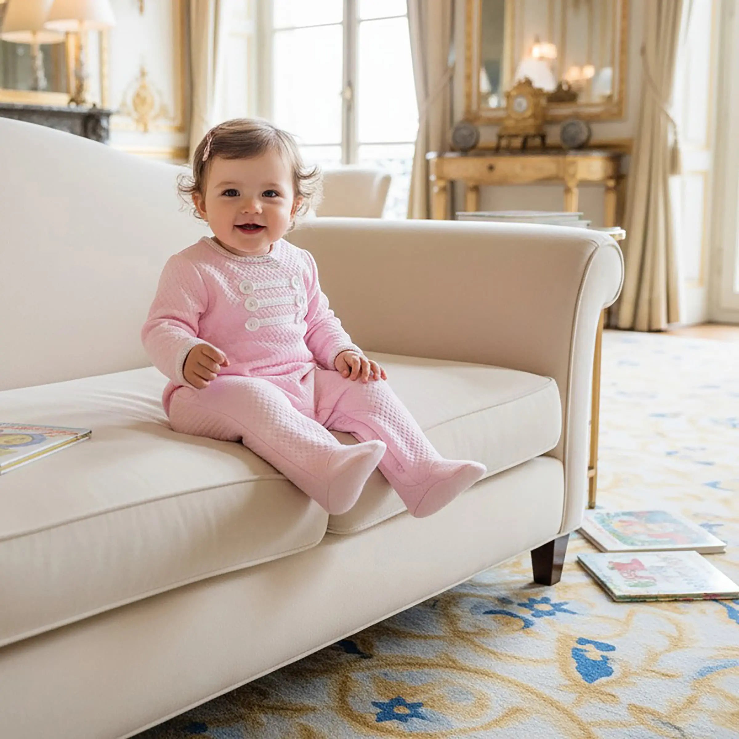 Our philosophy is grounded in the belief that the smallest moments deserve the grandest care. Moving away from mass production, we have curated a collection defined by "slow luxury." Each garment is crafted from our signature luxury textured cotton weave and finished with artisanal precision - from the traditional hand-smocking of our Couture line to the delicate embroidery executed in our London studio.